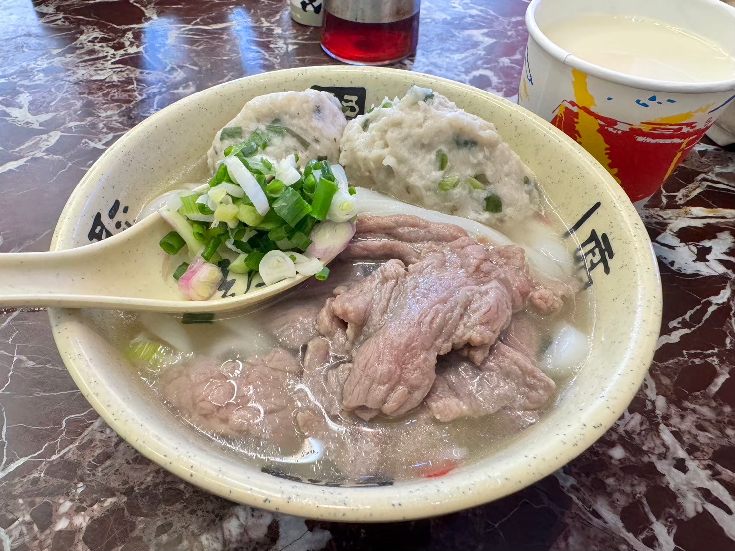 この写真の上に載っているものはケンヒーという魚のつみれと牛肉。美味しかった。